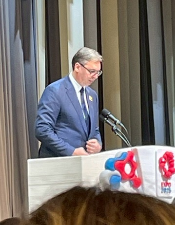 まず一番びっくりしたのは…セルビアの大統領が登場!まさか大統領のスピーチを直接聞けるとは思っていなかったので、会場全体に特別な緊張感と期待感が広がっていました。