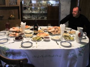 そして炭水化物ラッシュがスタート!ハチャプリ(チーズ、ほうれん草)、ロビアニ(前述のペーストにしたロビオを入れて焼き上げたパン)にお肉のスープ・ハルチョまで続き、テーブルはパンと煮込み料理でいっぱいに。この時点でまだ予定メニューの半分くらいでしたので、「最後までたどり着けるか…!?」と心配になってきました(笑)。