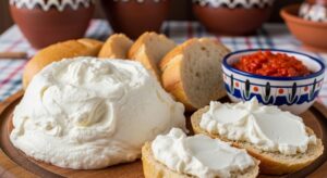 牛乳や水牛乳をじっくり加熱して表面に浮かび上がった脂肪分(クリーム)の膜をすくい取って冷やし固めたクリーム状の濃厚な乳製品です。クロテッドクリームにも似ており、チーズとバターの中間のような存在です。グリル料理と非常に相性が良いです。